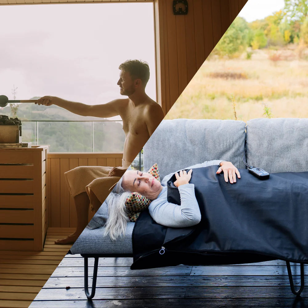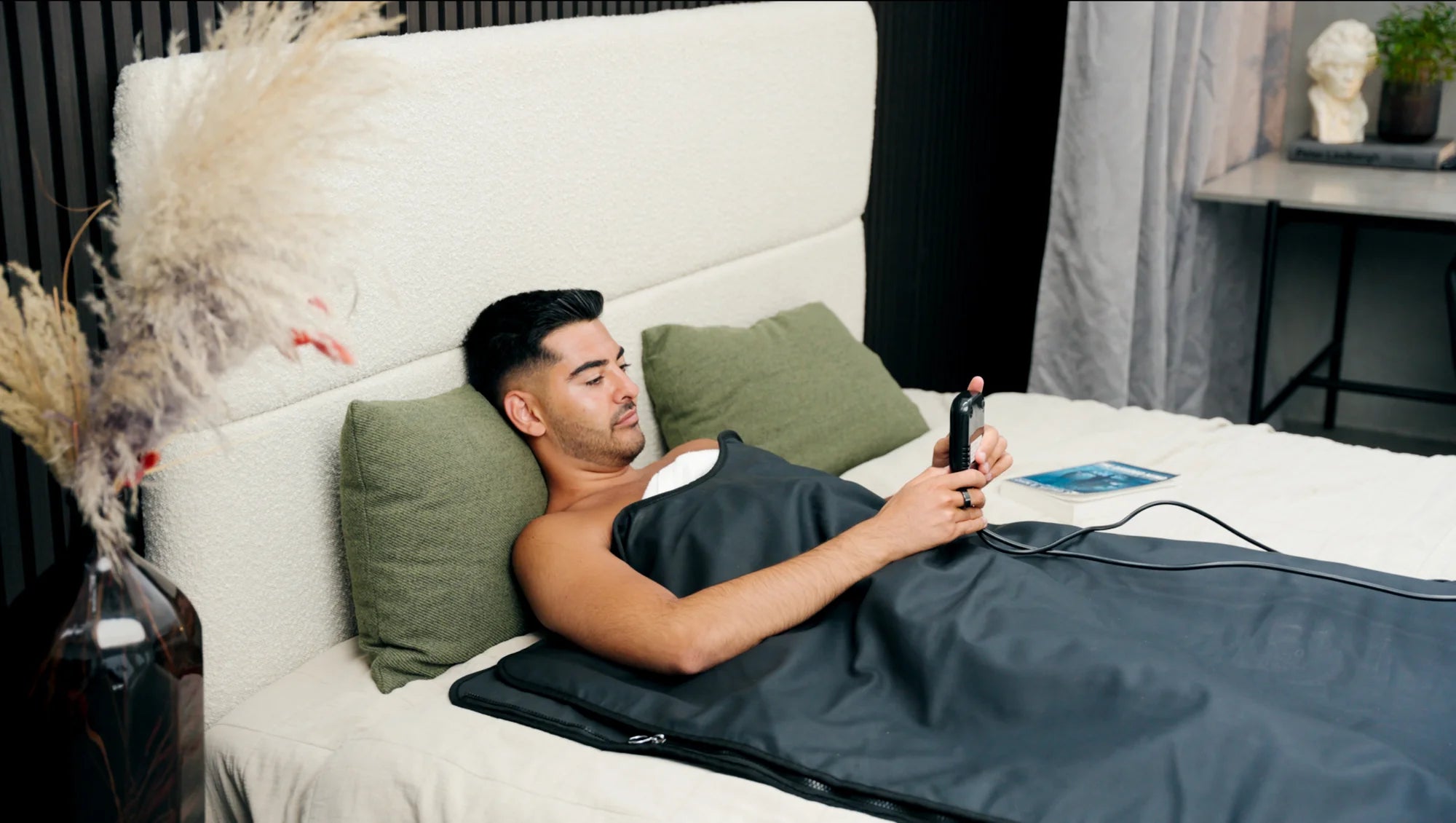 Eine Saunadecke ist ein tragbares Wellness-Gerät, das den Körper mit Infrarotwärme erwärmt - und nicht nur die Luft um Sie herum, wie es bei einer herkömmlichen Sauna der Fall ist. Sie wickeln sich in die Decke ein, die sich wie ein Schlafsack um Sie legt, und die Wärme dringt tief in Ihr Gewebe und Ihre Muskeln ein.