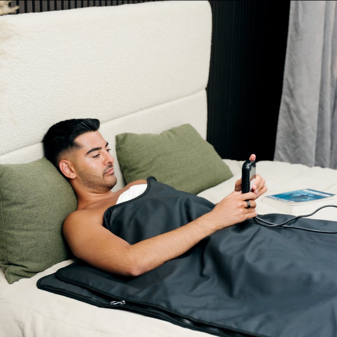 - Einstellung: Schalten Sie die Decke ein und wählen Sie die gewünschte Temperatur und Anwendungsdauer. Für Anfänger wird eine moderate Temperatur (ca. 45–50 °C) und eine Sitzungsdauer von 30–40 Minuten empfohlen.