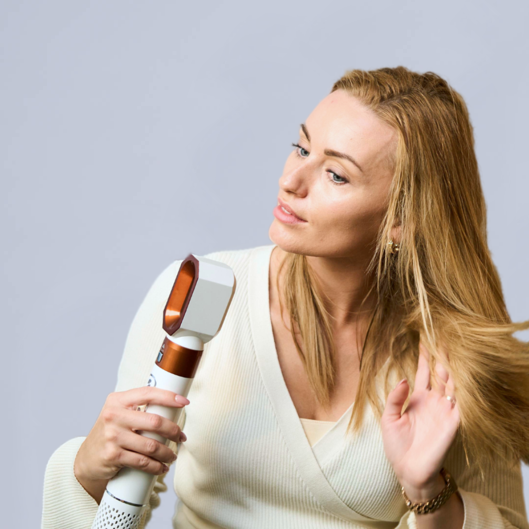 Das Gerät kann unabhängig davon verwendet werden, ob das Haar trocken, feucht oder nass ist. Welche Bürste Sie verwenden sollten, hängt jedoch vom Zustand Ihres Haares und dem gewünschten Ergebnis ab. Ist das Haar beispielsweise vollständig nass, empfiehlt sich die Verwendung des klassischen Föhns. Wenn Sie mit dem Lockenstab Locken stylen oder die Blowout-Bürste verwenden möchten, sollte das Haar leicht feucht sein.