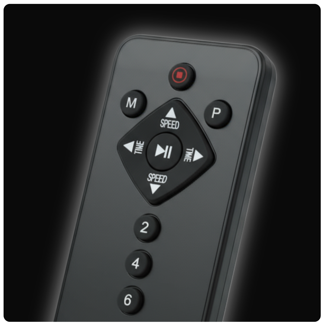 Ändern Sie die Geschwindigkeit, wählen Sie Programme und pausieren Sie, alles bequem über die Fernbedienung, damit Sie sich auf Ihr Training konzentrieren können, ohne Ihren Rhythmus zu unterbrechen.